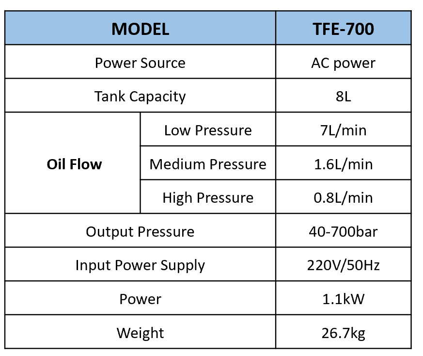 Adjustable output pressure from 40 to 700 bar, providing flexibility for diverse applications.
